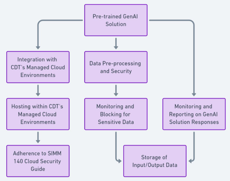 The solution will conduct required data pre-processing on state-provided data for tuning the GenAI model, scanning for and blocking sensitive/classified data to ensure compliance and security.